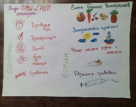 В нашем детском саду прошел конкурс рисунков, направленный на профилактику снижения заболеваемости гриппом и ОРВИ, формирования у детей дошкольного возраста основ профилактической культуры, активизации интереса к оздоровительному процессу, информирование родителей и детей о простых мерах профилактики ОРВИ, применения которых приводит к снижению заболеваемости и укреплению здоровья нации, содействия развития сотрудничества семьи и образовательного учреждения. Профилактика гриппа и ОРВИ в детском саду включает меры по предотвращению распространения вирусов и укреплению иммунитета дошкольников. В нашем детском саду ежедневно проводится ряд профилактических мер, помогающих защитить воспитанников от простудных заболеваний. Одним из обязательных условий среди профилактических мер – соблюдение чистоты и гигиены. Ежедневно младший воспитатель проводит влажную уборку в группе, в приемной и спальне. Дежурные с огромным удовольствием помогают в уборке группы. С детьми проводятся беседы о необходимости мытья рук, о таких вредных привычках, как прикасание руками к лицу, засовывание пальцев и прочих предметов в рот. Не на последней строке в списке профилактик гриппа и ОРВИ находится соблюдение режима проветривания. Первое проветривание осуществляется еще до прихода детей, с последующим включение кварцевой лампы. Под особым контролем находится температурный режим групп и спален. Без закаливания и физической активности профилактика не даст желаемого результата. Ребятам очень нравится массаж и самомассаж, сопровождающийся художественным словом. Особенно укрепляют детские организмы ежедневные прогулки. Физические нагрузки также являются неотъемлемой частью в укреплении здоровья детей, они сопровождают детей на протяжении всего дня, это и утренняя гимнастика, и физические минутки, и спортивные упражнения, и подвижные игры, и полноценная физкультурная образовательная деятельность (3 раза в неделю, одна из которых на улице). Одним словом, все это дополняет активность детей в течение дня.