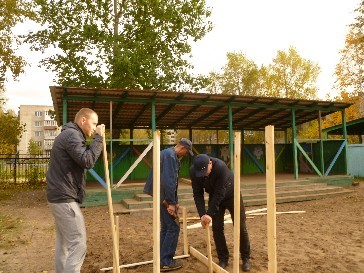 Весь октябрь в нашем детском саду неуступно кипит работа на прогулочных участках. Благодаря задумкам педагогов и умелым рукам наших родителей участки детского сада преобразились: на них выросли новые интересные постройки, которые весной покрасим в яркие цвета и будут радовать наших малышей. Хочется поблагодарить всех родителей, которые откликнулись и приняли участие в субботниках по благоустройству прогулочных территорий своих групп. Родители – наши первые помощники, и они это доказали своим положительным примером. Спасибо!